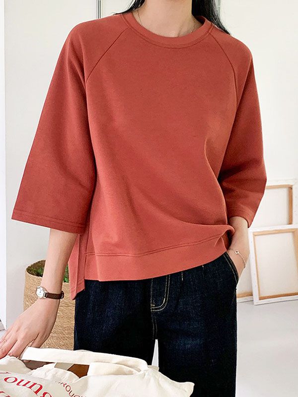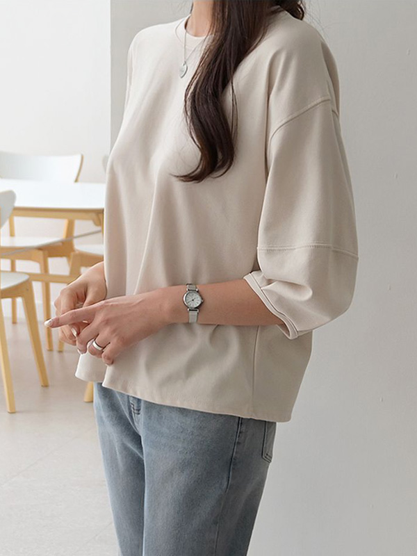 【C55177】韓國MCD 飛鼠袖素T-圓領絲滑觸感寬鬆連肩七分袖上衣★★