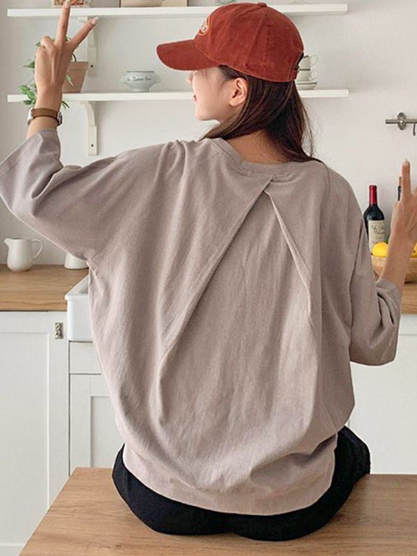 【C50478】韓國PUR 純棉圓領T恤-後背抓褶大尺碼素面拉克蘭連袖上衣_影片★★