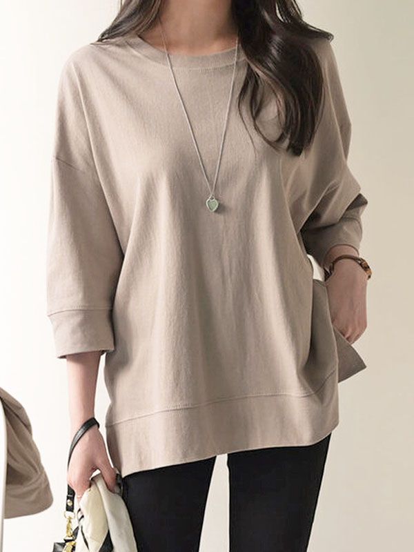 【C55174】韓國DOD 後背打褶七分袖-素面前短後長寬鬆圓領寬袖上衣★★