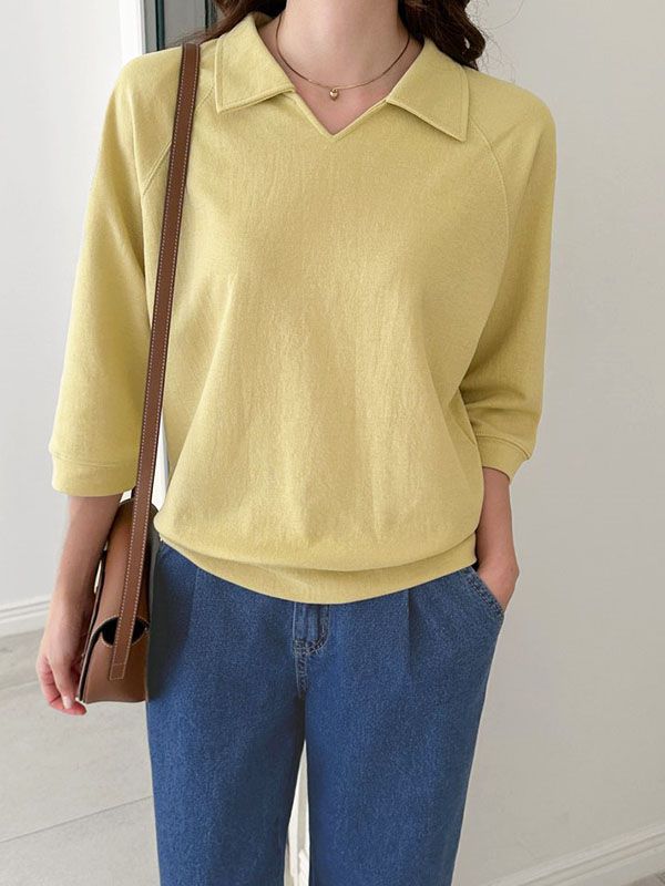 【C54380】韓國BLG V領七分袖上衣-素面好氣色寬鬆長版_影片★★