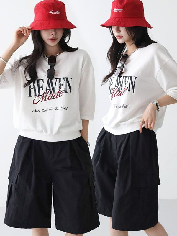 【C55147】韓國MID 極簡字母T恤-柔軟莫代爾棉圓領合身七分袖上衣★★