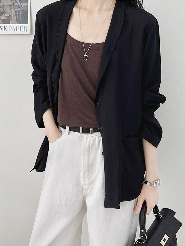 【C55474】韓國GRM 西裝翻領外套-素面V領開襟排釦口袋OL長袖