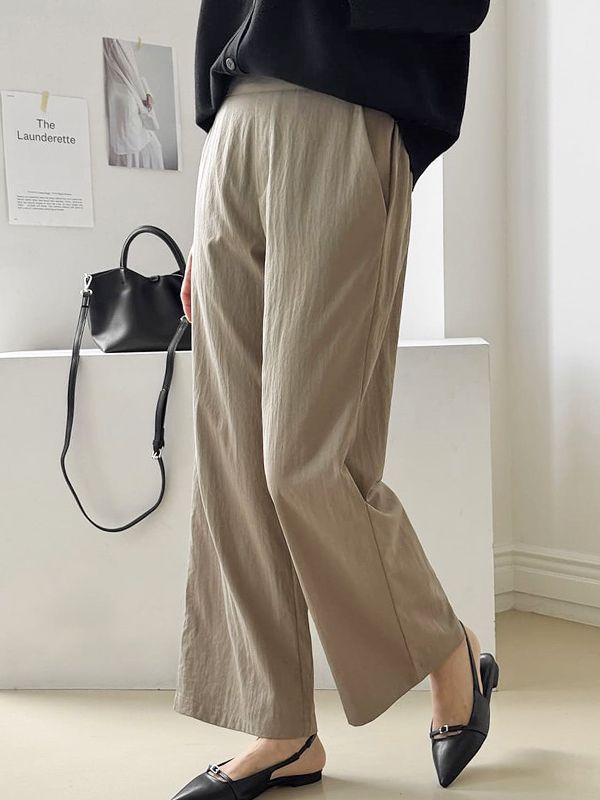 【C55483】韓國MAZ 微喇叭西裝褲-輕盈尼龍素面後腰鬆緊雙口袋長褲