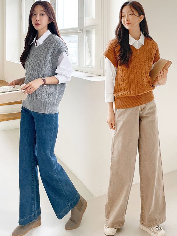 【C55485】韓國LUS 麻花針織背心-包肩短袖V領素面好氣色混羊毛上衣