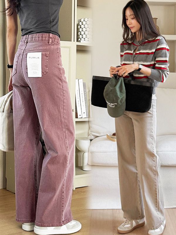 【C53598】韓國NAK 厚磅直筒長褲-素面彈性腰內磨毛復古_影片★★