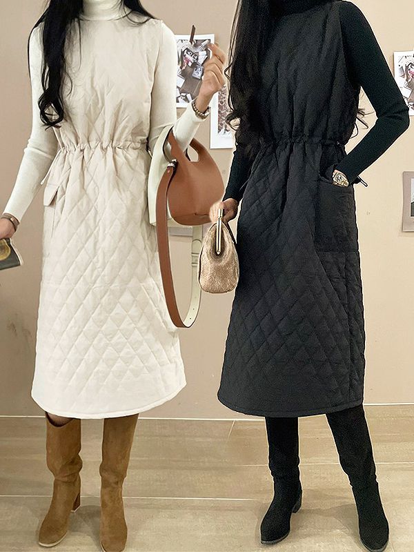 【C55754】韓國COJ 鋪棉背心外套-蓬鬆素面立體雙口袋束口腰立領無袖