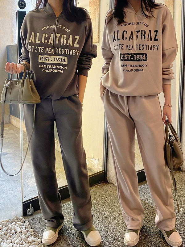 【C55683】韓國DOD 字母刷毛套裝-半開襟連帽長袖上衣+厚磅束口長褲★★