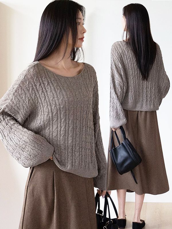 【C55366】韓國MCD 寬鬆麻花針織衫-慵懶一字領落肩長袖素面上衣★★