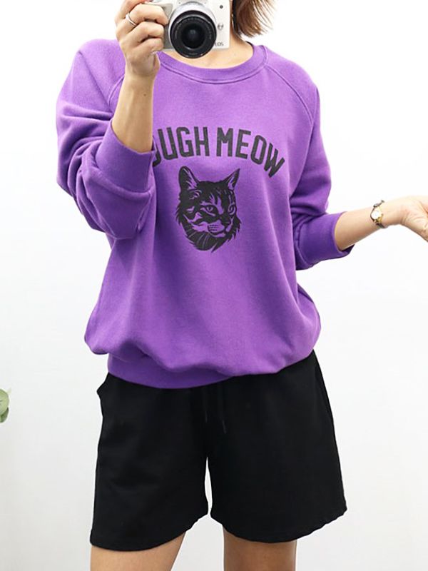 【C55390】韓國MIS 個性貓咪大學T-英文字母圓領好氣色印花長袖上衣★★