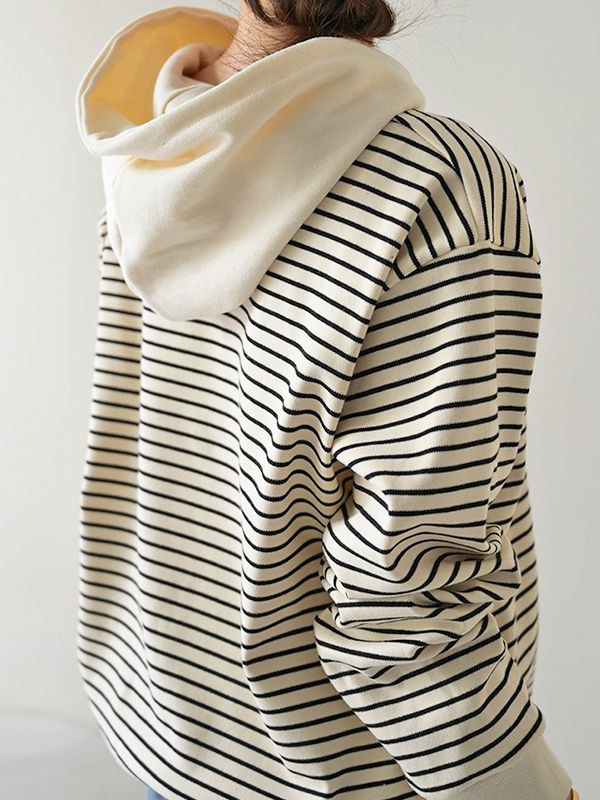 【C55516】韓國DLY 條紋連帽上衣-經典條紋跳色連帽長袖帽T★★