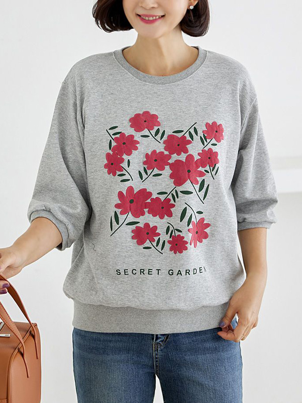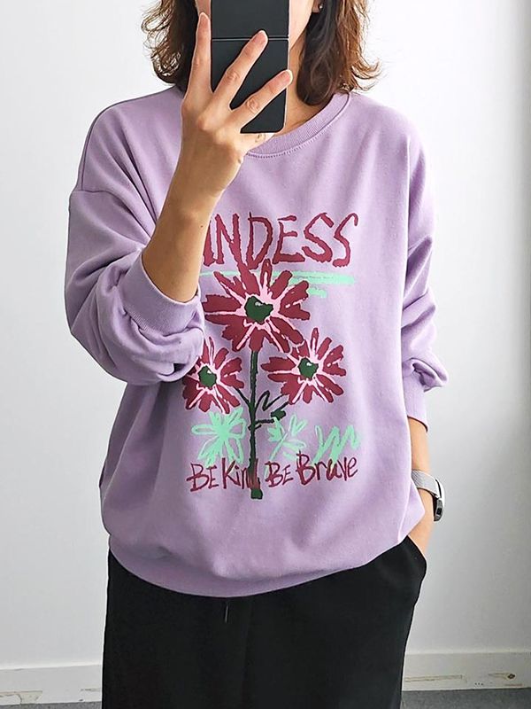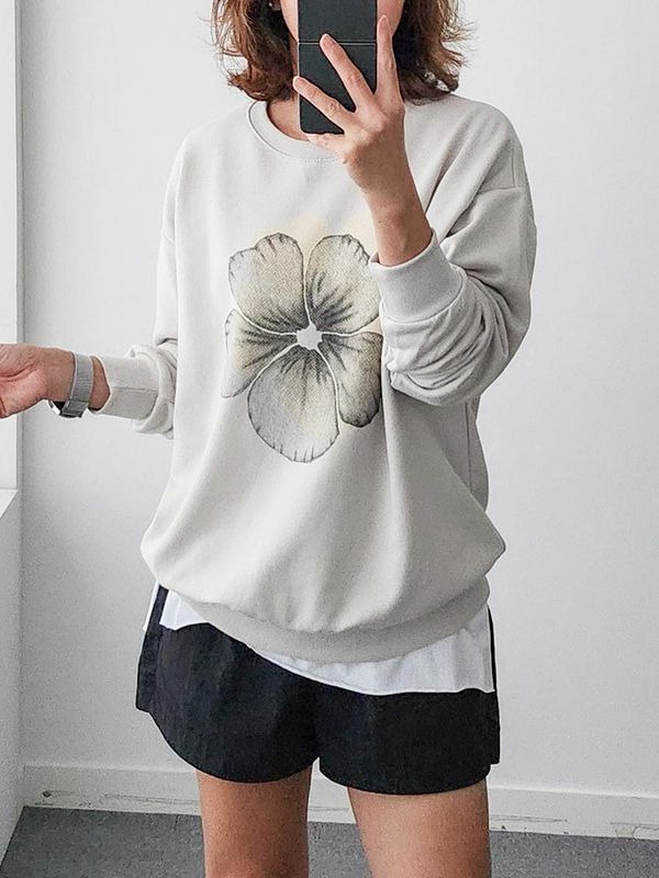 【C55543】韓國MIS 手繪花卉大學T-寬鬆字母好氣色印花圓領長袖上衣