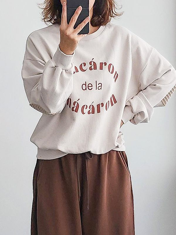 【C55368】韓國DLY 補丁袖字母上衣-圓領個性英文落肩寬鬆長袖T恤★★