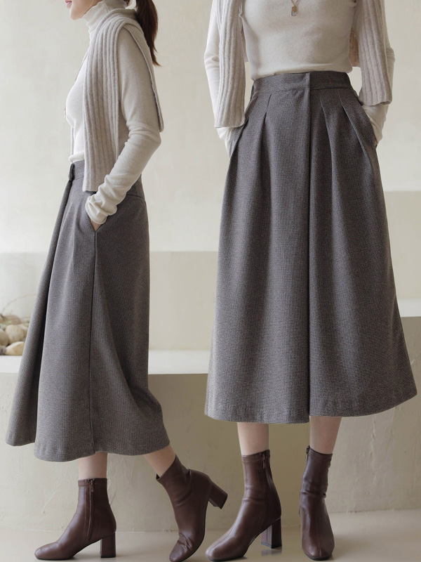 【C55848】韓國HAF 格子寬褲裙-交叉褲頭傘狀後腰鬆緊毛呢七分褲★★