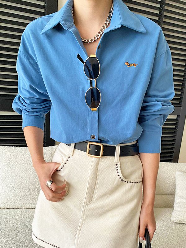 【C55868】韓國BLG 拼接襯衫領上衣-假兩件V領素面長版長袖T恤