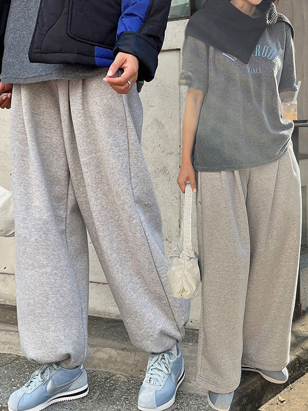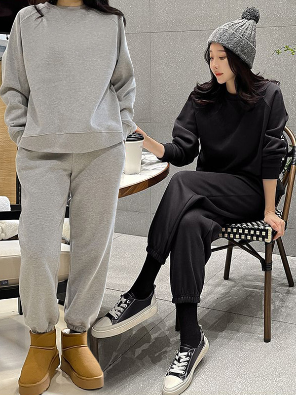 【C55705】韓國MAZ 刷毛束口褲套裝-素面長版長袖上衣+鬆緊腰長褲