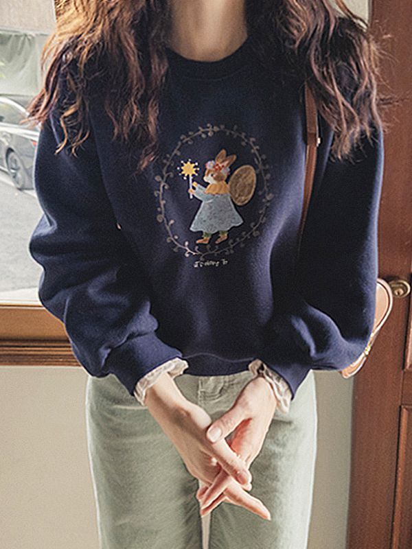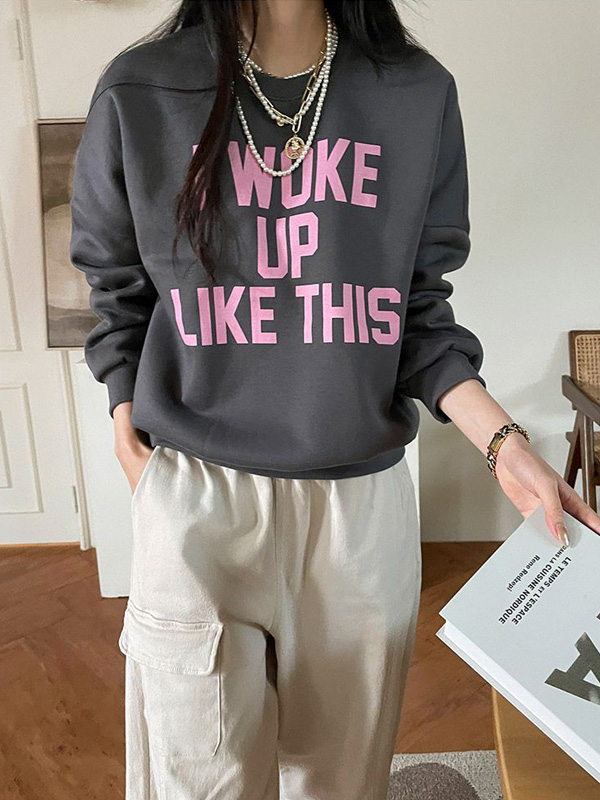 【C55674】韓國MIS 臘腸狗印花上衣-厚實內刷毛好氣色寬鬆字母長袖★★
