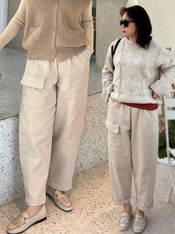 ★限時24H優惠★【C55755】韓國LHL 信封口袋錐形褲-厚磅內薄磨毛素面全腰鬆緊長褲