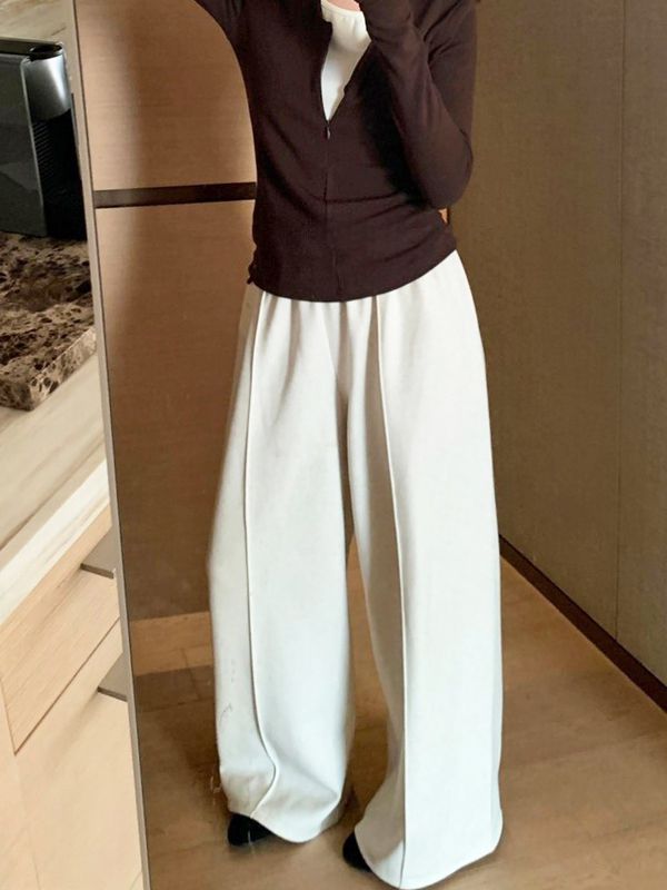 【C55773】韓國SAN 超彈力寬褲-素面A字車線大褲管寬鬆內刷毛長褲★★