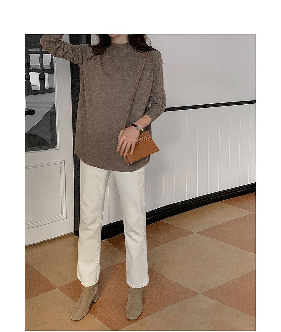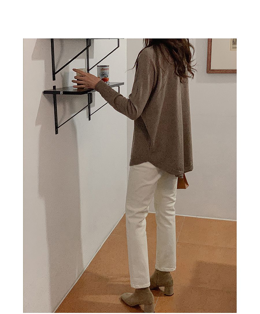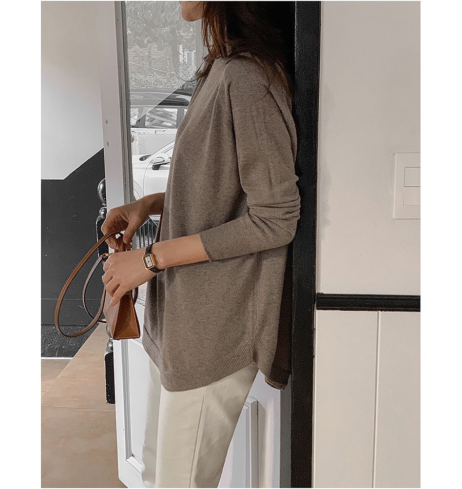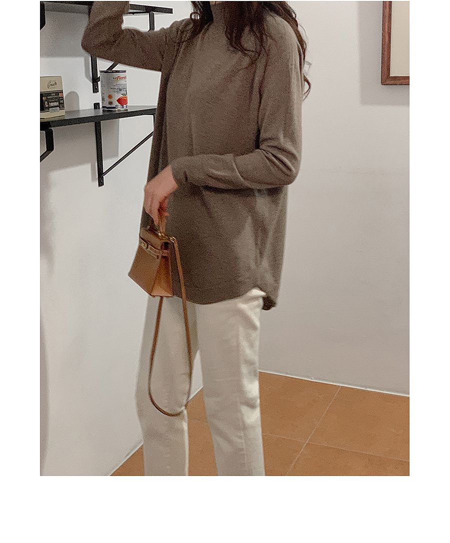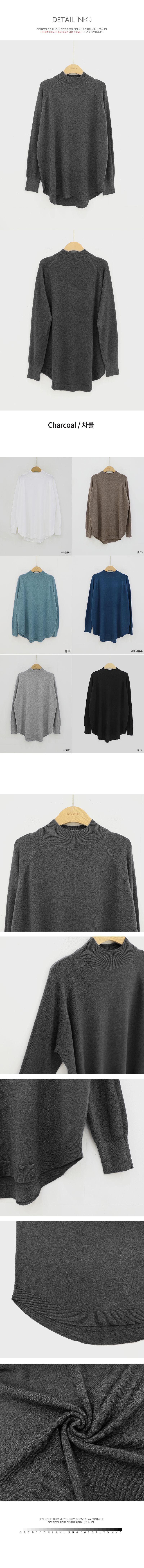 輕薄柔軟針織/弧形下襬/側開衩/高領/立領/連肩袖 - 休閒居家簡約百搭素面立領針織上衣長版上衣針織衫模卡色天藍色深藍色灰色深灰色黑色