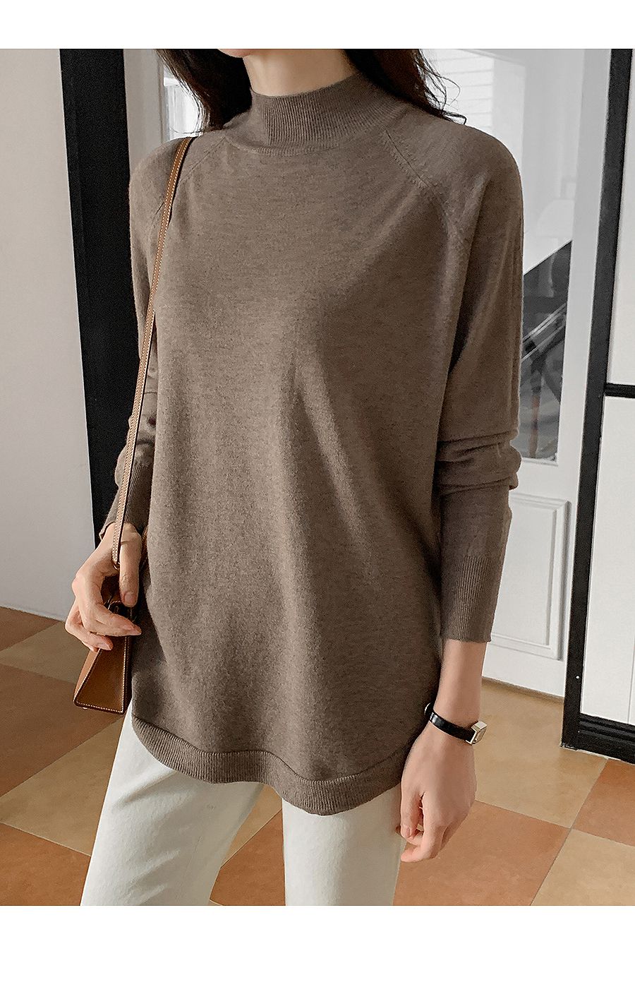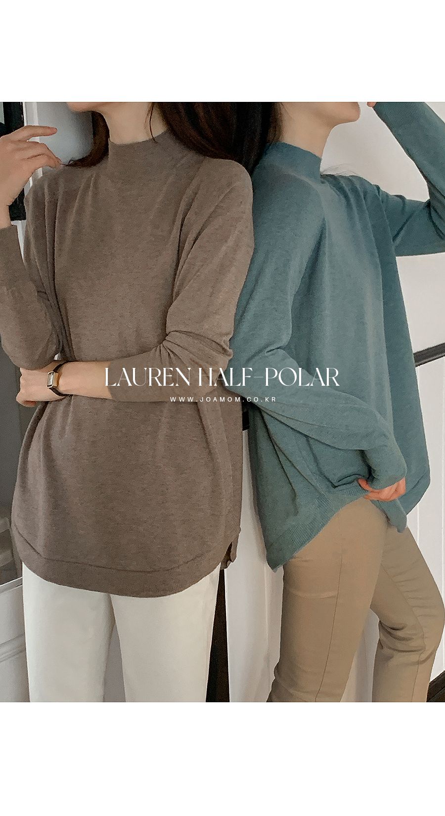 【C55725】韓國JOA 立領針織上衣-素面弧形下襬長袖長版針織衫★★