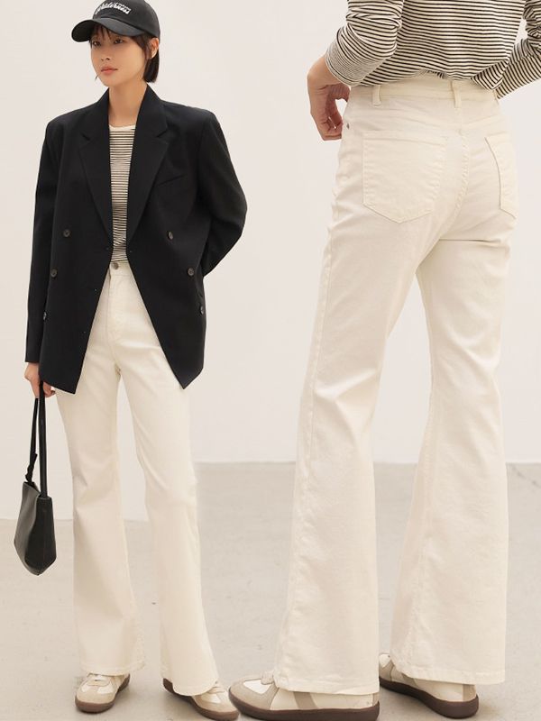 【C55962】韓國ABS 高腰喇叭褲-素面柔軟水洗棉雙口袋休閒長褲★★