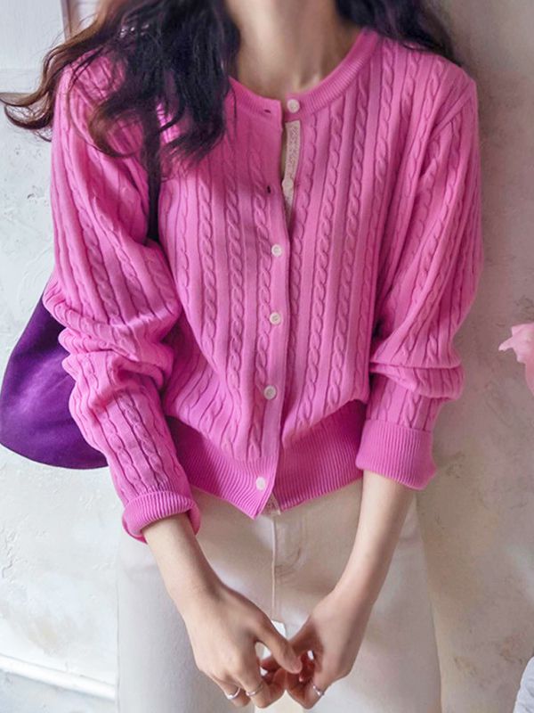 【C55579】韓國RUN 珍珠釦針織衫-素面寬邊圓領開襟排釦長袖上衣外套_影片★★