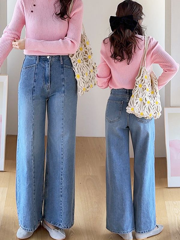 【C53559】韓國DEE 寬褲管牛仔褲-素面直筒落地長褲復古柔軟_影片★★
