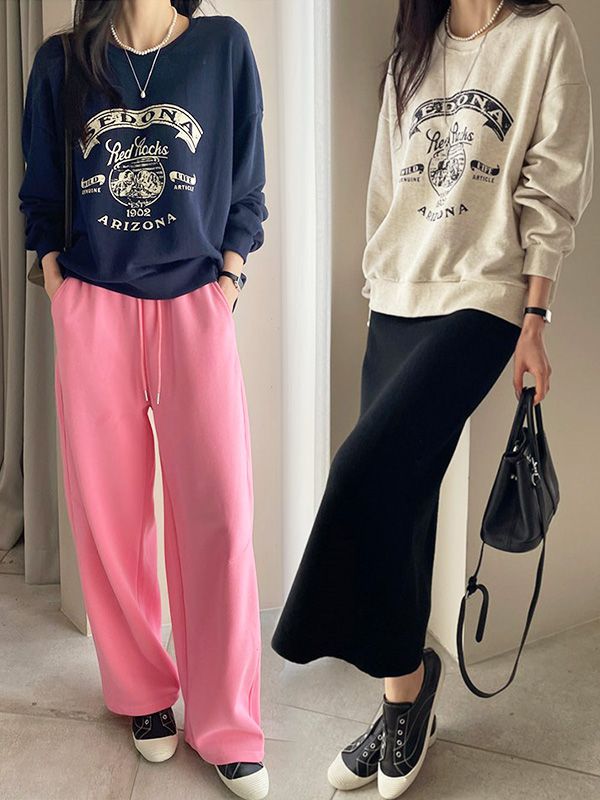 【C55972】韓國SNY 蕾絲拼接大學T-圓領法式字母側邊蕾絲長袖上衣
