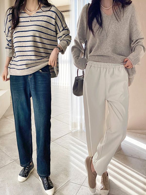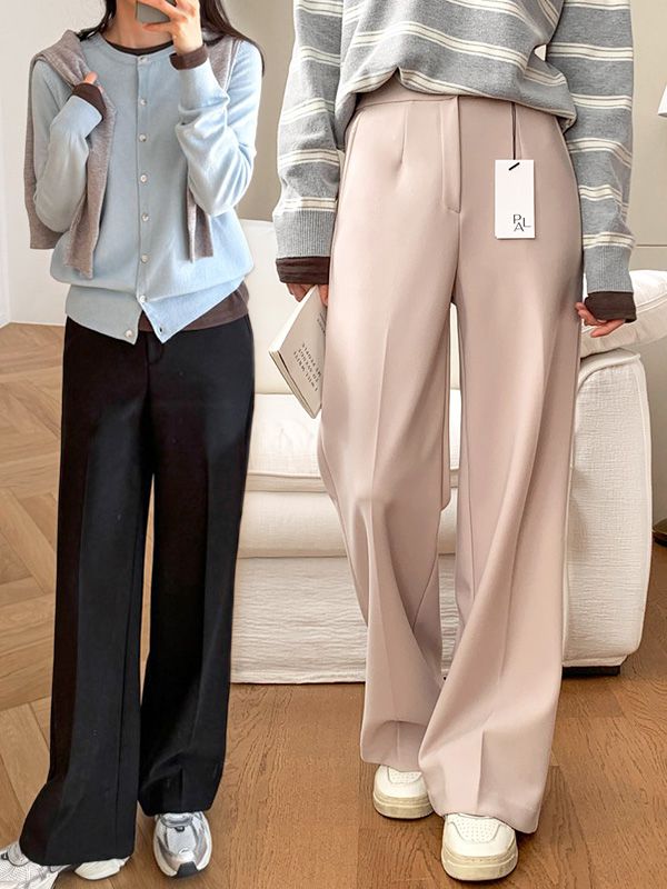 【C53293】韓國PUR 針織直筒褲-厚實素面寬褲長褲保暖_影片★★
